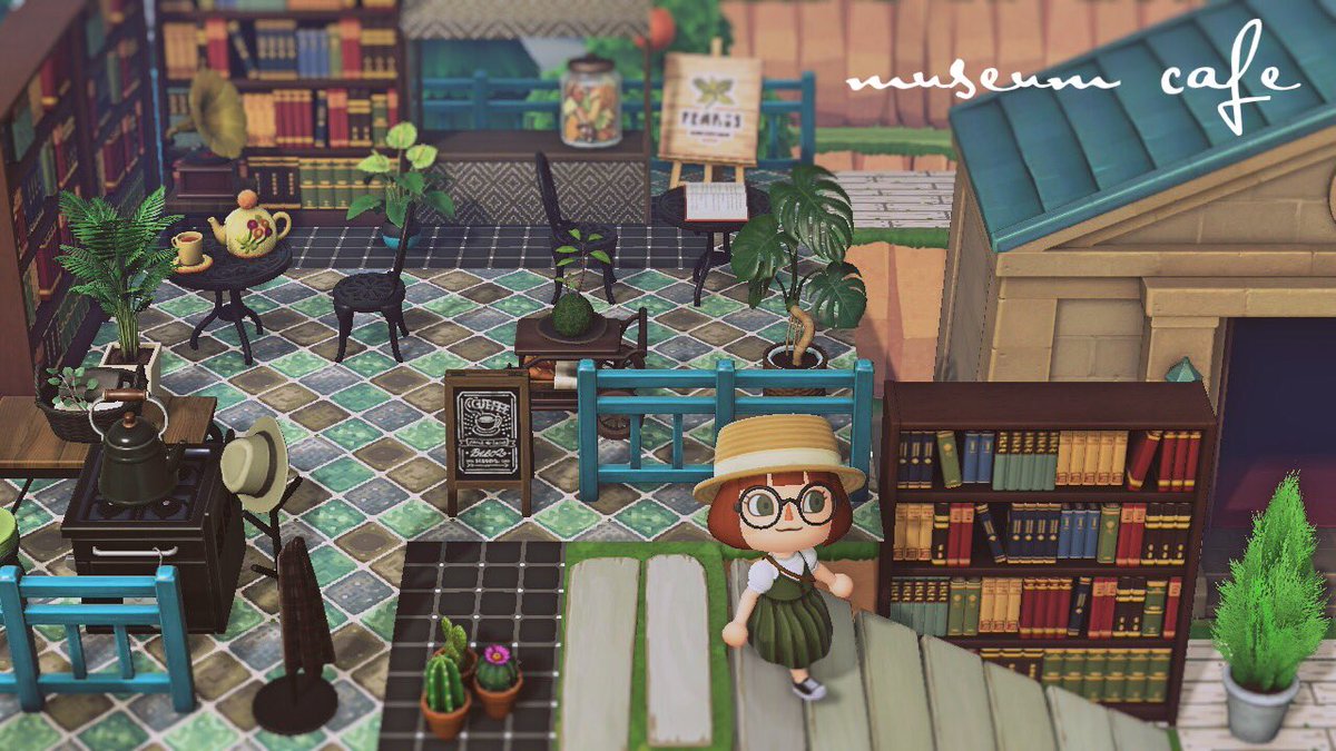n a o on X: "博物館横の本屋カフェ🍃📚あつ森ACNHマイデザインあつまれどうぶつの森AnimalClossinghttps:t.co Jd9PJagYEp"X。